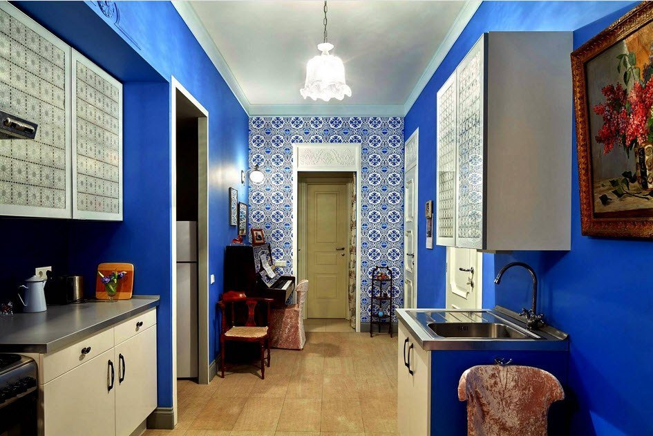 Использование одного синего цвета ни в одном стиле неприемлемо, поэтому необходимо сочетать его с другими материалами. Данный подход создаст изысканность, выразительность и законченность дизайна.