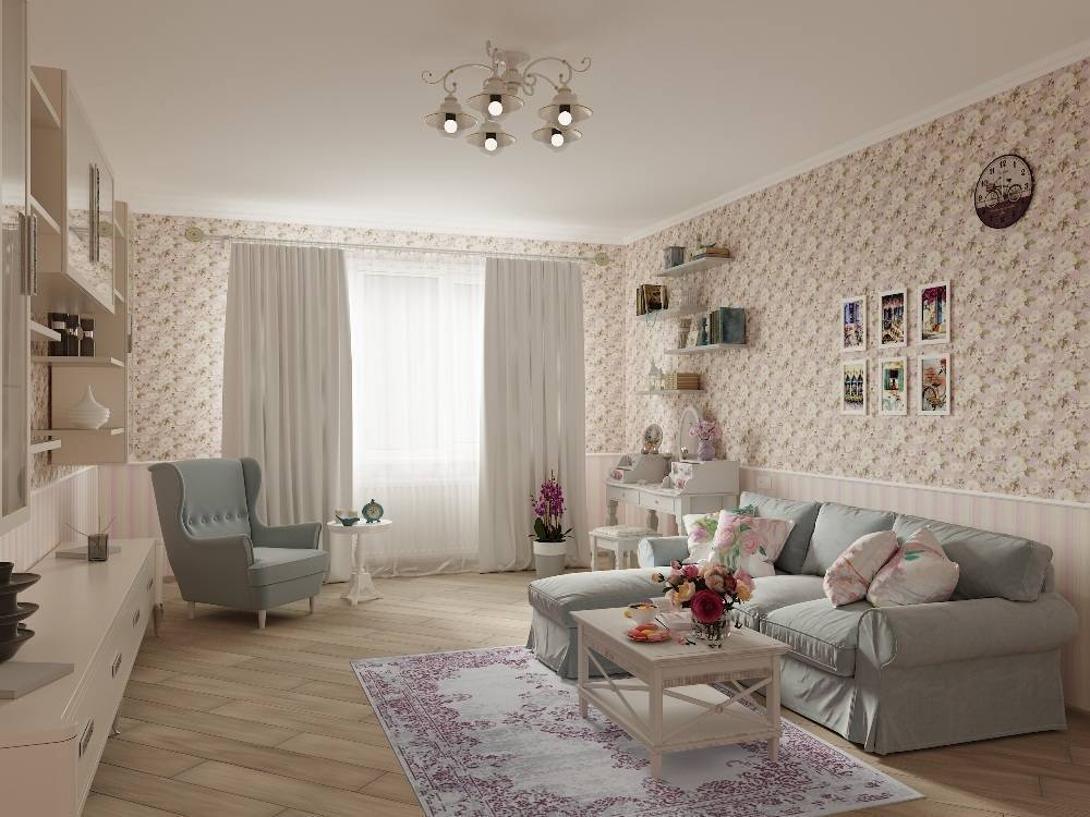 Обои не должны выгорать под действием солнца: в небольшой гостиной практически все стены будут располагаться в близости от окна, и постоянный контакт с лучами повлияет на стойкость оттенков.