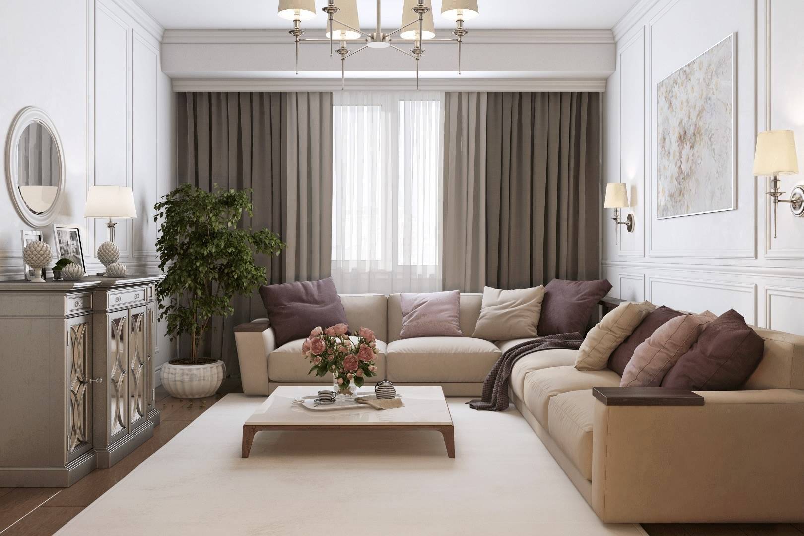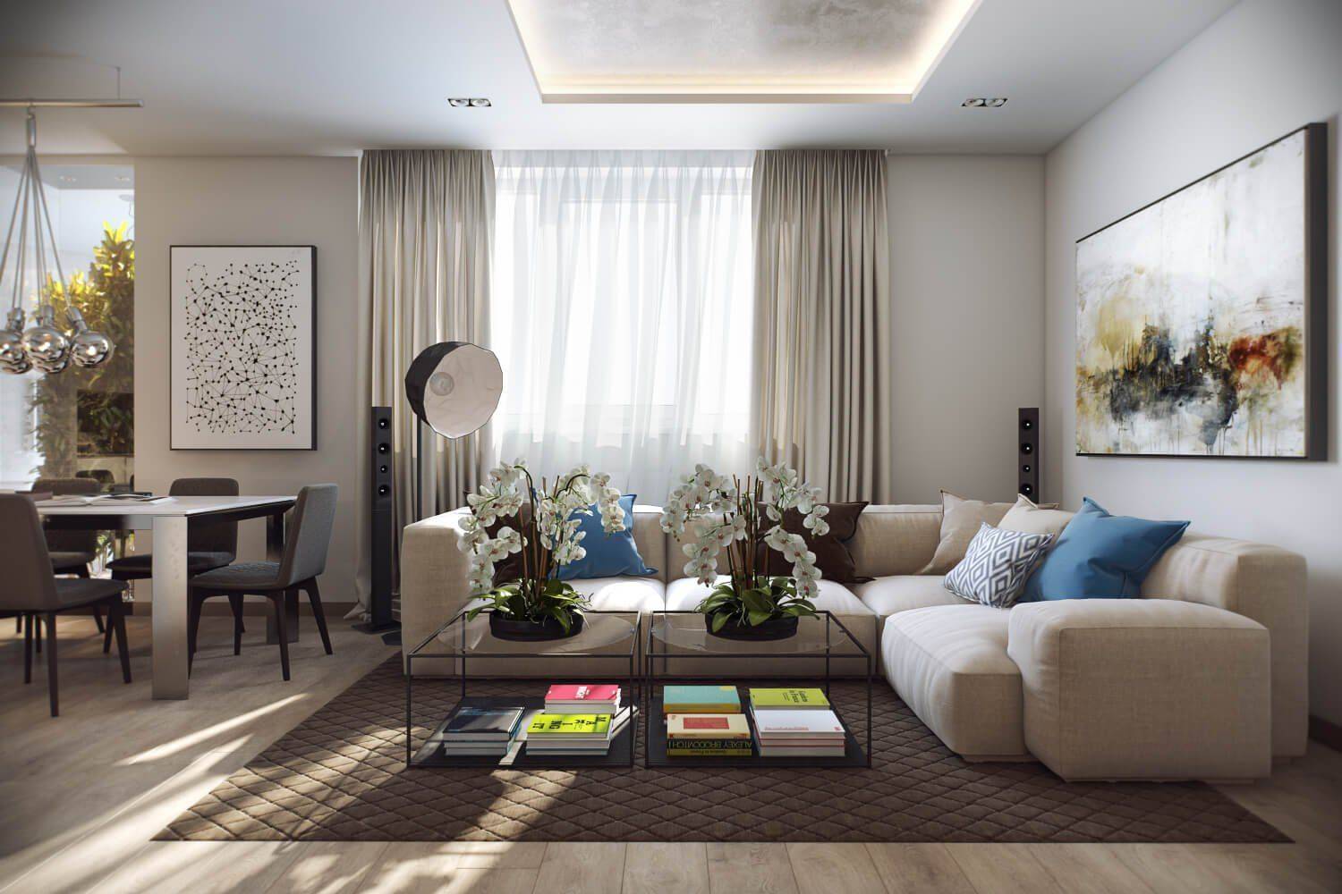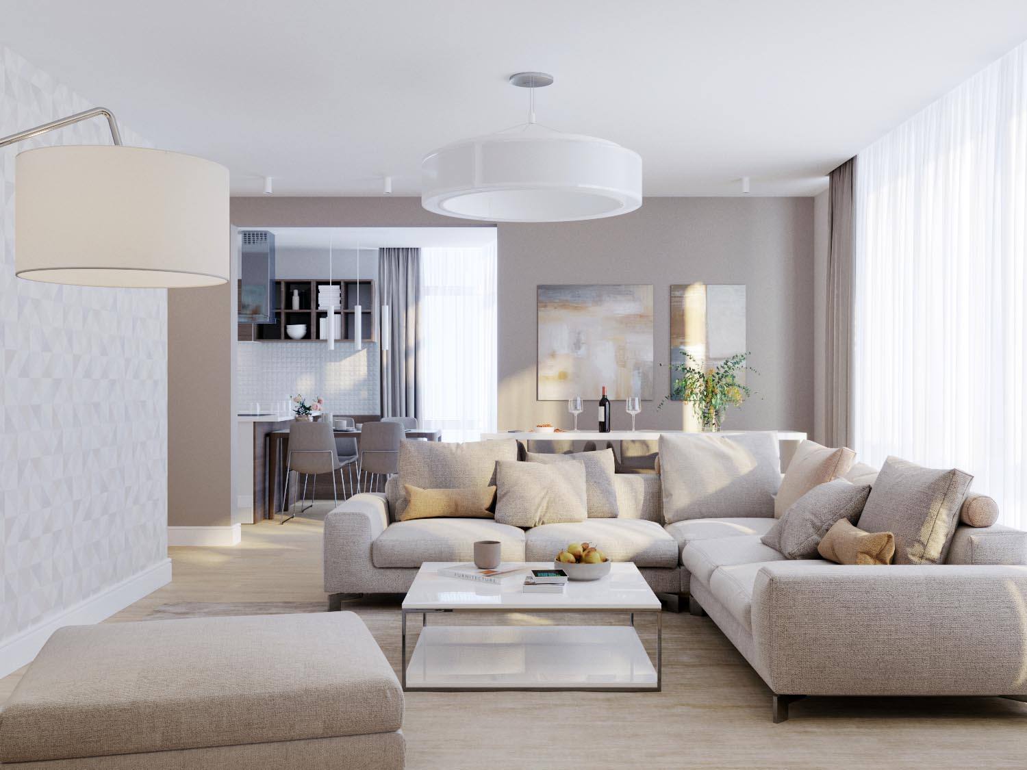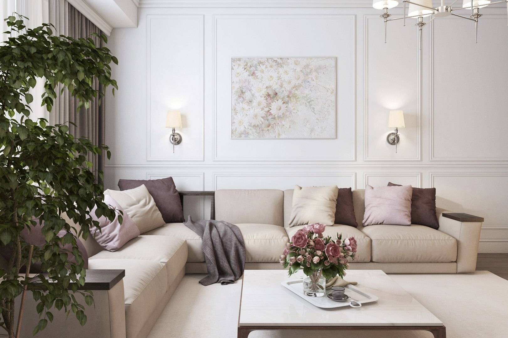 Современная гостиная в светлых тонах: стильный декор с белым в главной роли