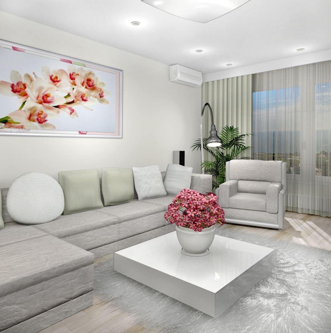 Если вы хотите украсить современную белую гостиную, подумайте, хотите ли вы добиться конечного эффекта благодаря различным структурам и материалам, или желаете ввести какой-то дополнительный цвет. Монохромную версию гораздо сложнее реализовать, потому что, к сожалению, белая расцветка имеет свои оттенки. Бывает, что сочетание двух элементов рядом создает некоторый диссонанс. Может оказаться, что один белый будет желтым, а другой сместится к ярко-серому. Когда вы поставите их рядом друг с другом, то вместо радости у создастся впечатление, что одна из этих вещей старая и изношенная. Вот почему более опытные декораторы рекомендуют сочетание белого с некоторым контрастным цветом. Это придаст эффект свежести и современности, и в то же время защитит вас от неприятных сюрпризов. Посмотрите несколько предложений белой гостиной и выберите для себя максимально подходящий вариант.
