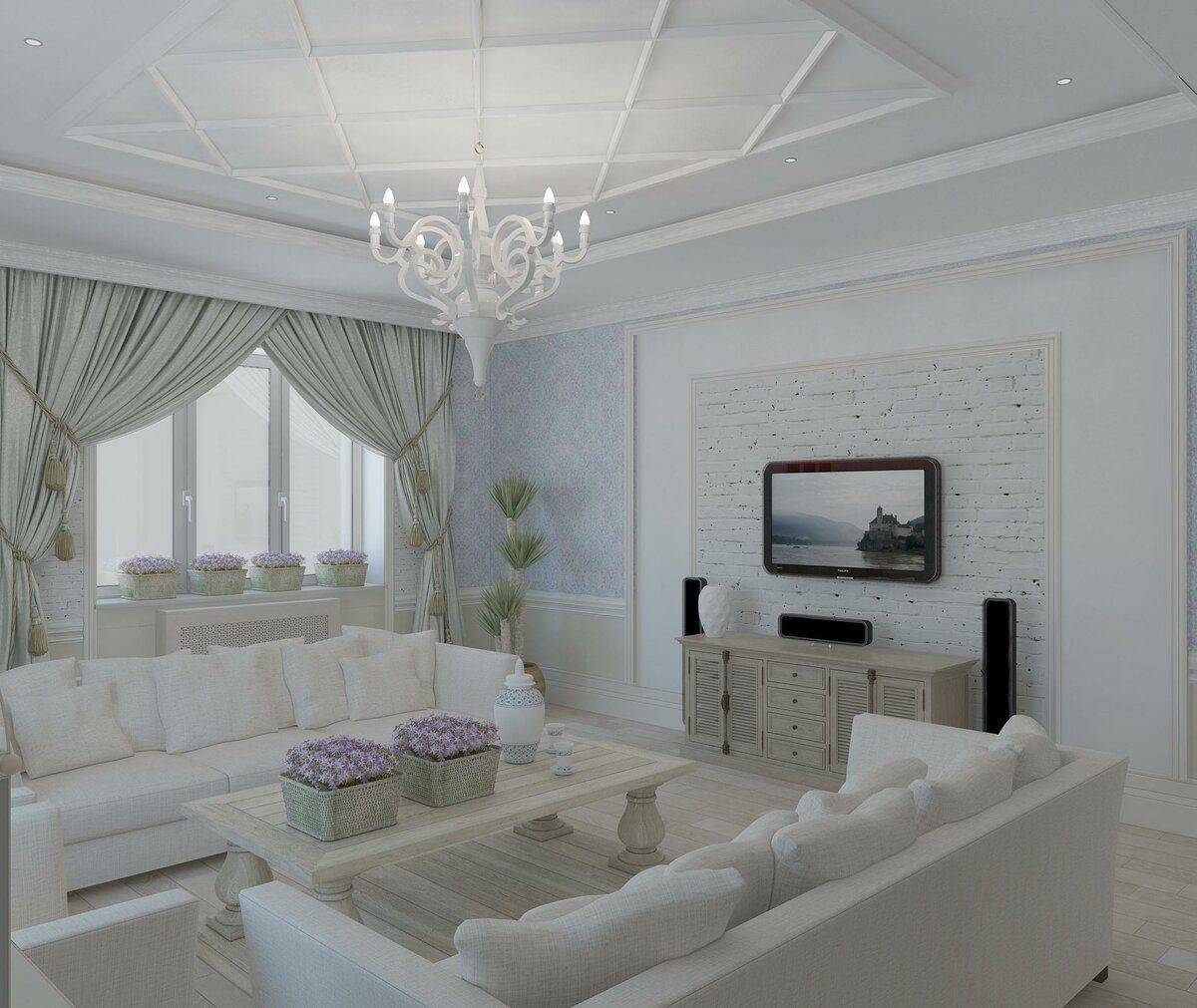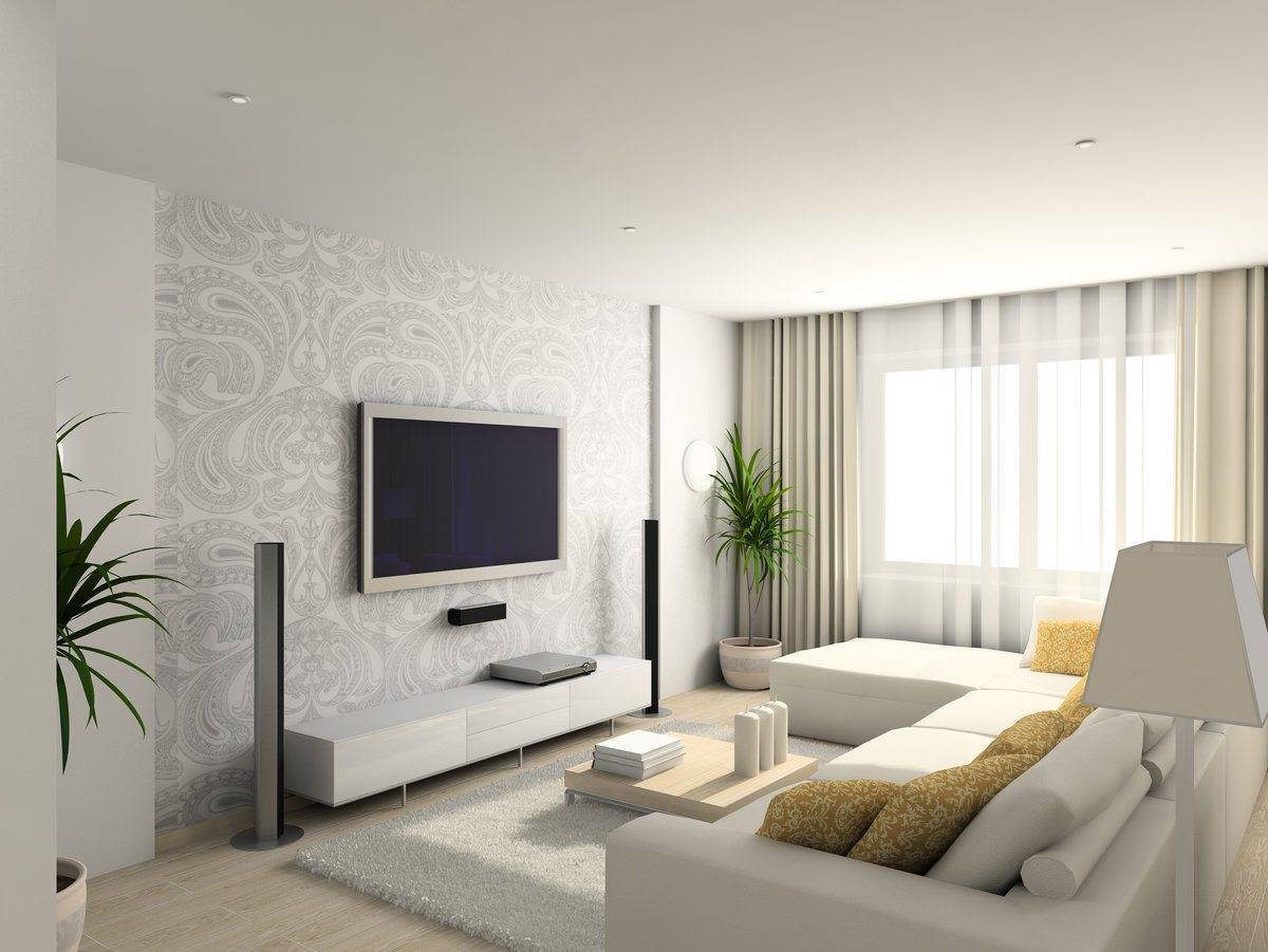 Гостиная с белыми стенами