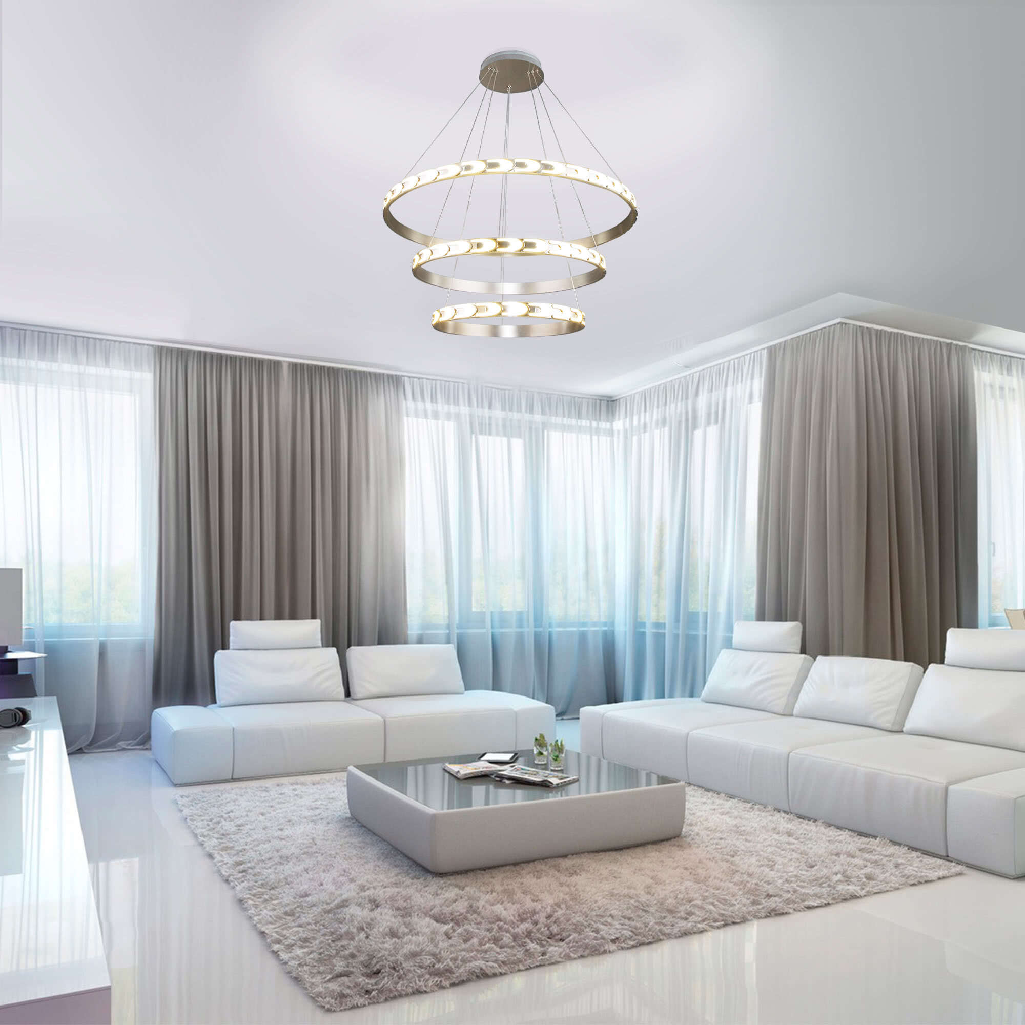 Освещение в белой гостиной