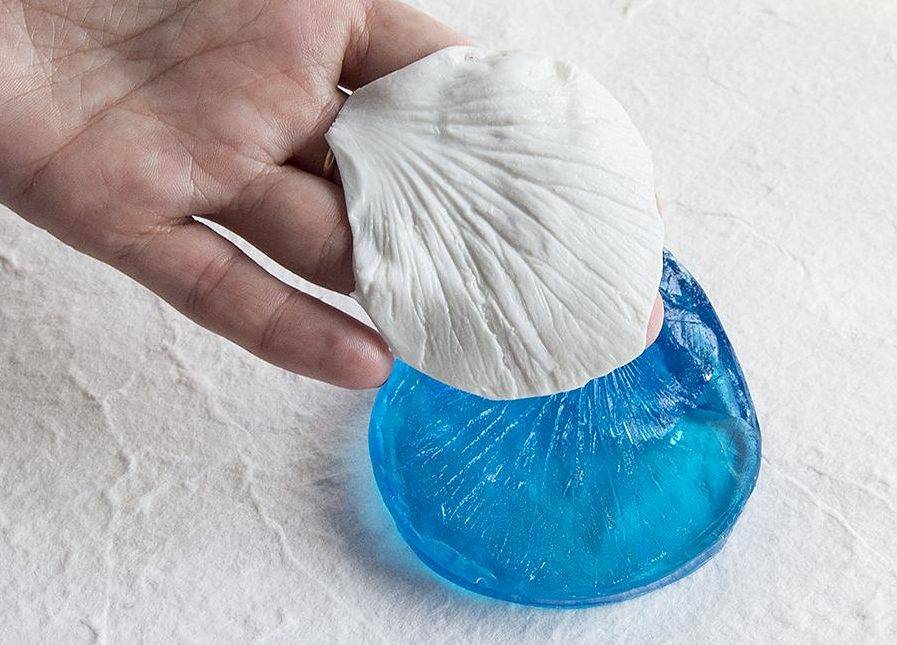 - Формирование лепестков и листьев. Для этого существует множество способов и техник (подробнее рассмотрим в мастер-классах). Так, заготовки можно переминать и перетирать пальцами, нагревать, растягивать или процарапывать зубочистками/апельсиновыми палочками.