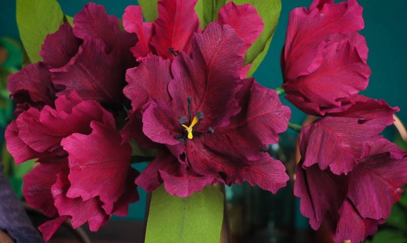Умело изготовленные из бумаги цветы выглядят совсем как настоящие