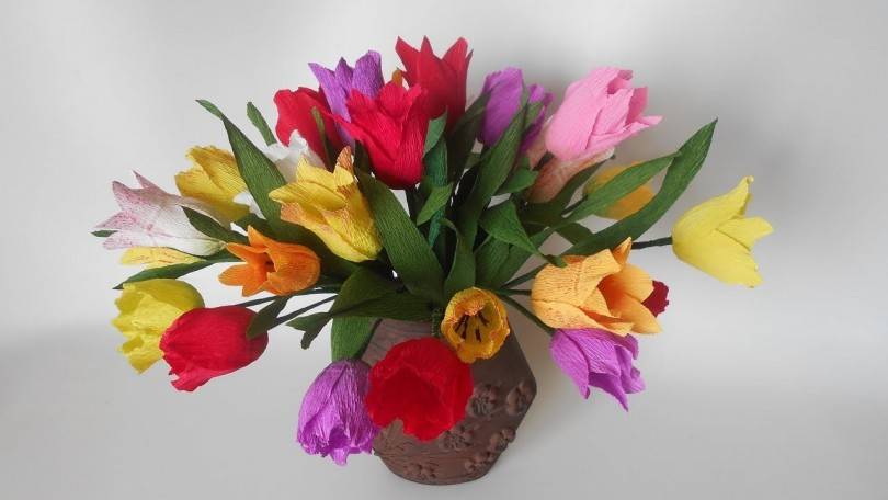Более того, такое интересное и увлекательное занятие наверняка придется по вкусу детям. Стоит попробовать сделать цветы из гофрированной бумаги своими рукам, при этом для детей лучше подбирать самые простые варианты. Они точно будут в восторге от огромных цветов в их рост и от мелких розочек. При выборе мастер-класса нужно ориентироваться на то, что детям сложные манипуляции еще не осилить, а вот простой цветок по типу тюльпана своими руками из гофрированной бумаги они сделать вполне смогут.