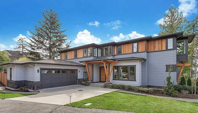 Фасады коттеджей в этом стиле характерны сильными акцентами на геометрических формах, большими окнами, смешанными материалами, большим количеством естественного света, гибкой планировкой, подходящей для удовлетворения потребностей семьи.