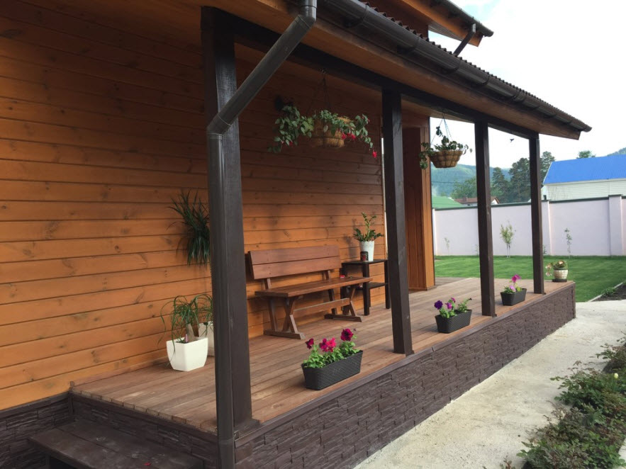 Современная архитектура отличается своей многогранностью. Терраса в загородном доме – это не просто архитектурный изыск, это прежде всего удобство и уют, это место, где человек может остаться наедине с природой. Когда-то террасой называли уступы на склоне местности. Позже эти уступы стали создаваться людьми сознательно, в качестве садово-пакового дизайна. В переводе с французского «терраса» означает «площадка». Сегодня терраса является переходной зоной между домом и садом. Чаще всего терраса представляет собой деревянный настил с укрепленным основанием, перилами и навесом.