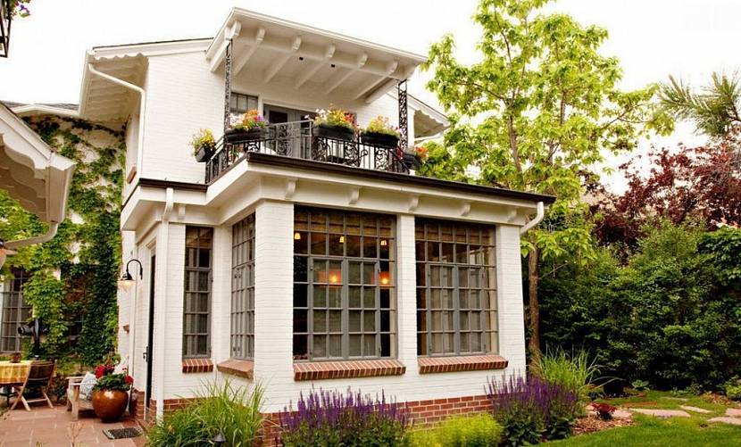 Фасад классического дома украшают лепниной. Стены могут быть кирпичными или бетонными, покрашенными в светлые цвета. Много узких окон и колонны всегда выбеливают.