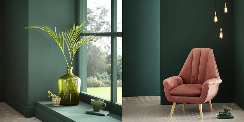 Темный, глубокий цвет смотрится роскошно, создает в интерьере спокойную, расслабленную атмосферу. Универсальный оттенок гармонично впишется в любое помещение и дизайн. Модный темно-зеленый подчеркнет яркость цветочного принта или металлических аксессуаров.