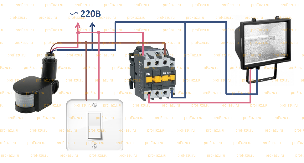 Схема включения датчика движения с выключателем