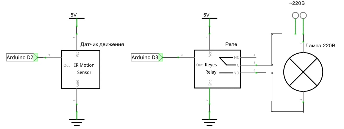 Трехпроводная схема подключения датчика движения