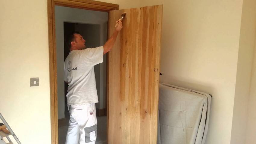 - Чтобы не было потеков, красить нужно, положив дверное полотно горизонтально.