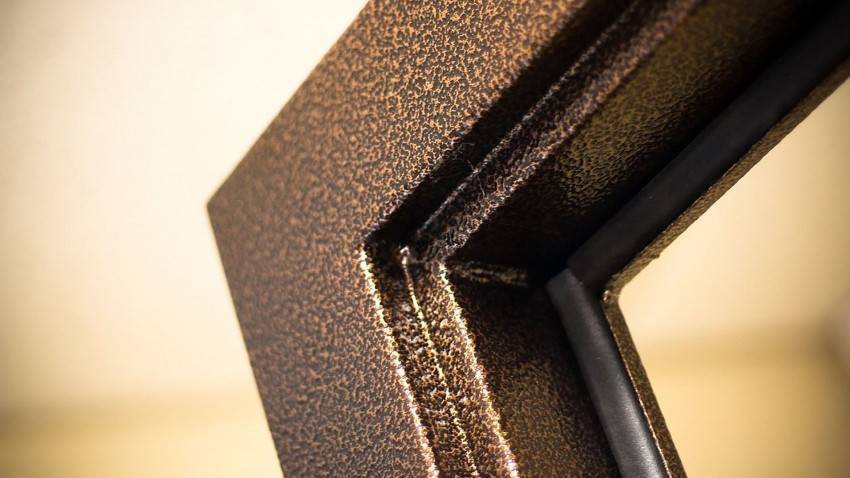 Обратите внимание, что по краям двери кожу подворачивают. Только потом вбивают гвоздики