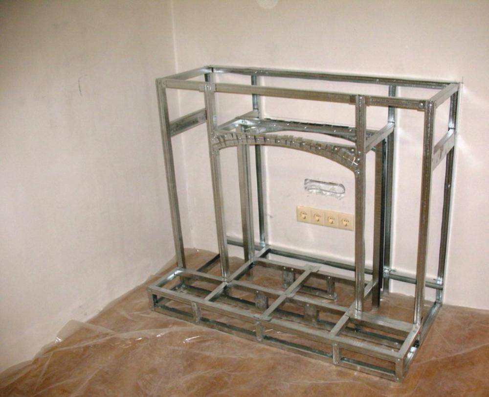 Из металлического профиля собираем каркас для камина, согласно собственному чертежу.