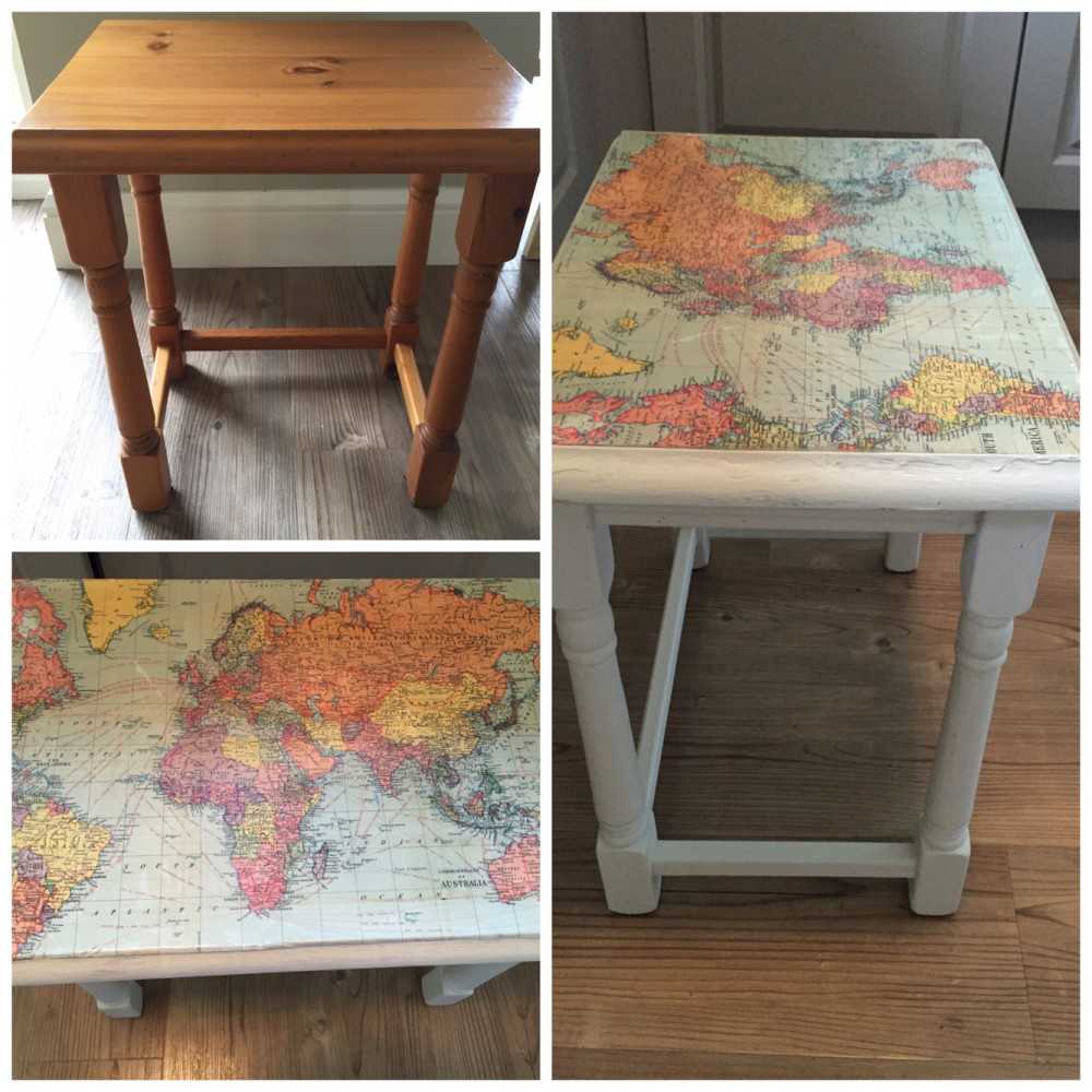 Перед началом работ по декорированию столешницы, ножки старого стола и края столешницы покрасили в светлый цвет: так больше он подходит к новому стилю оформления. Далее начался процесс его превращения.