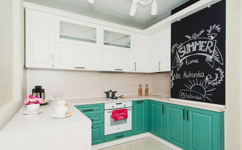 В комнате для приготовления пищи украшения должны быть немаркими и хорошо очищаться. Для оформления стены подойдет «доска для посланий». Меловое или грифельное приспособление оригинально смотрится в интерьере и несет полезную функцию. На поверхности записывают напоминание, понравившийся рецепт или меню на день.