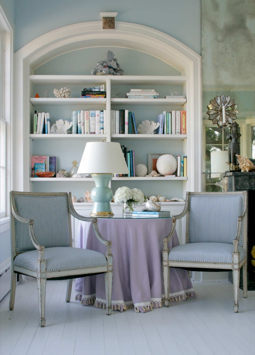 - Задайте акценты, окрасив мебель не целиком одним цветом, а выделив ножки, кромку стола, полочки.