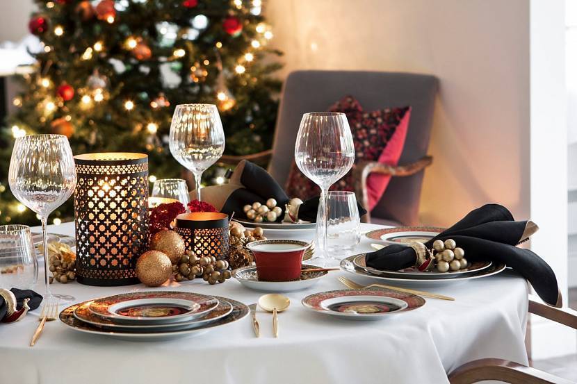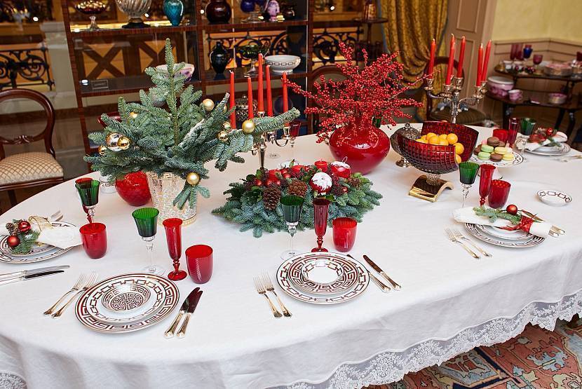 Сервировка стола на новый год красивым фарфоровым сервизомИсточник vplate.ru