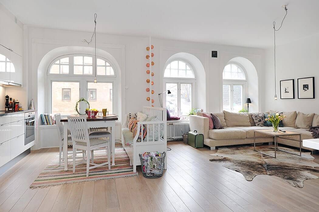 В скандинавском стиле можно оформить любую жилплощадь. Направление отлично подойдет для одно-, двухкомнатной квартиры. Интерьер помещения будет светлым и просторным, лаконичным и спокойным.