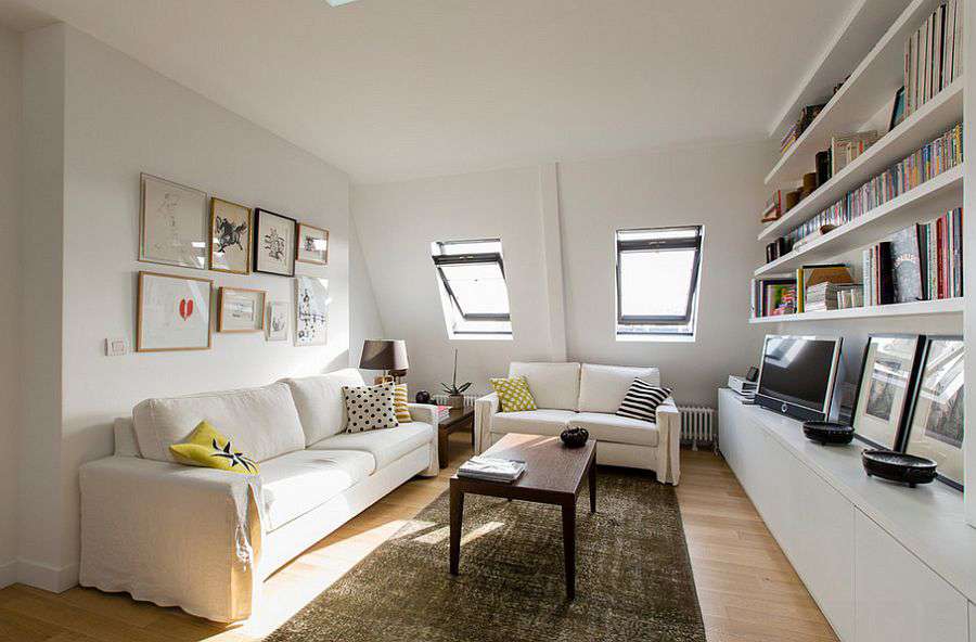 - Универсальным и вместительным системам хранения. Это связано с тем, что в помещении особенно ценится свободное пространство;