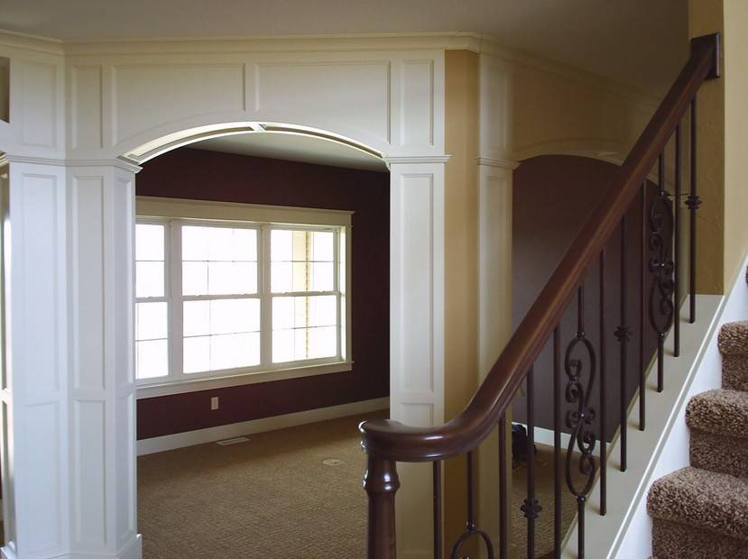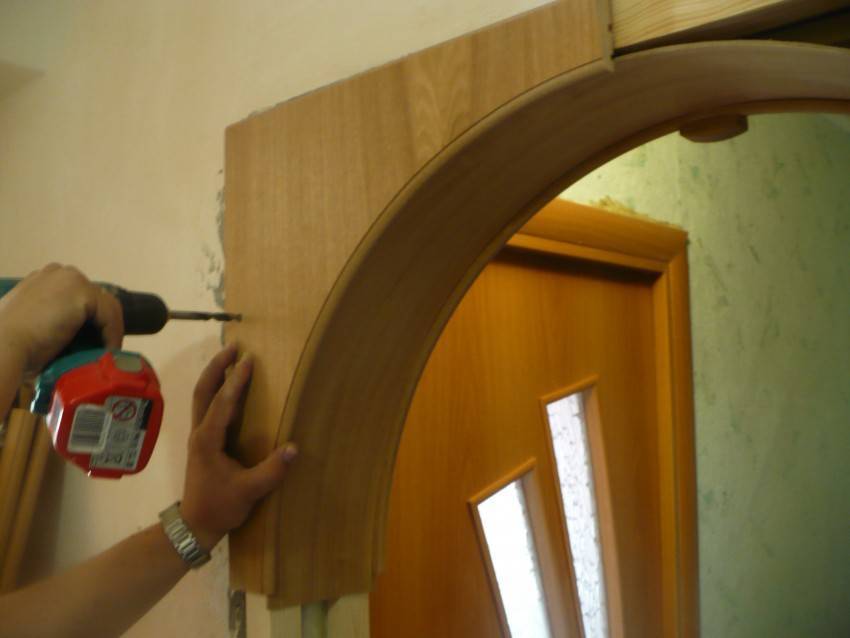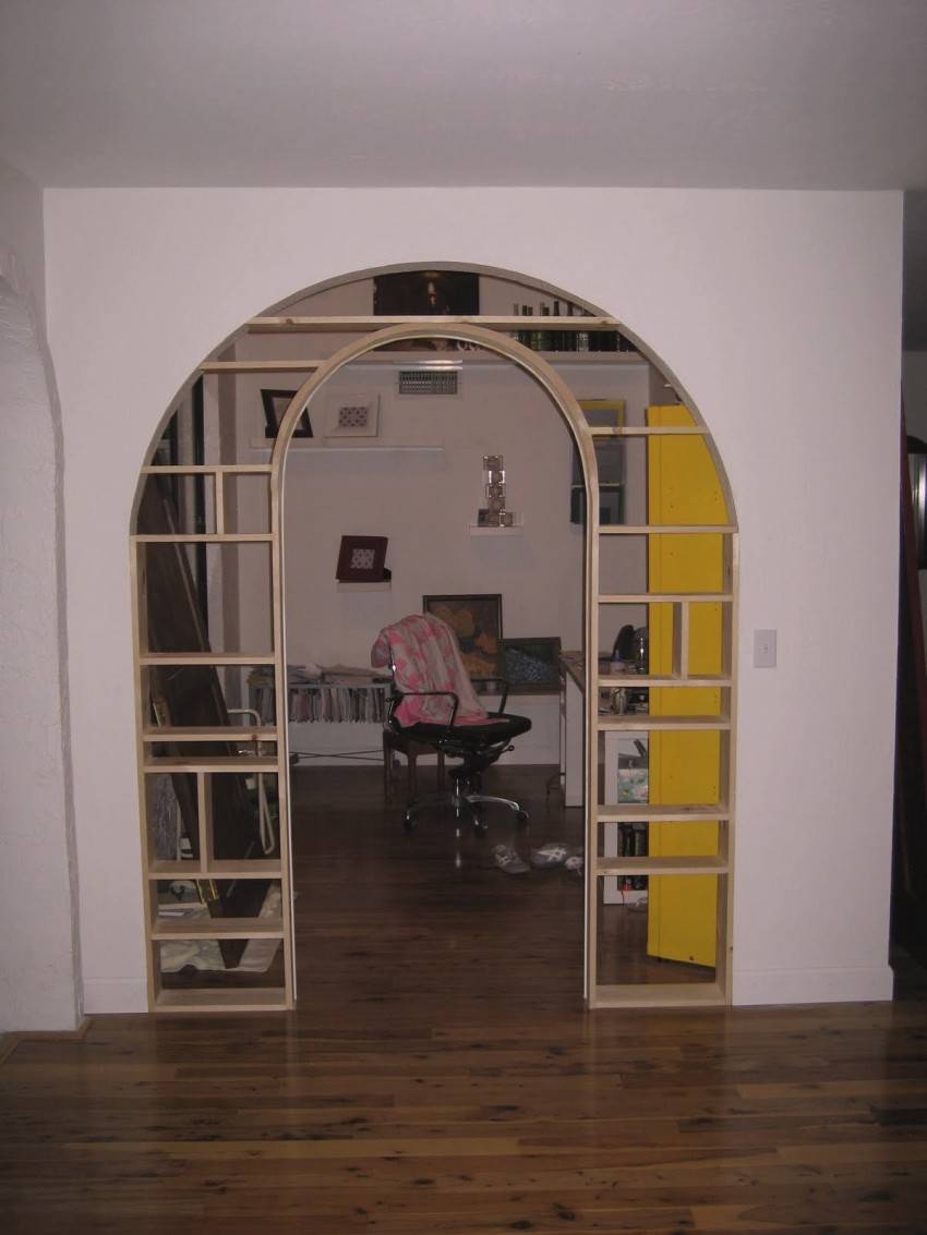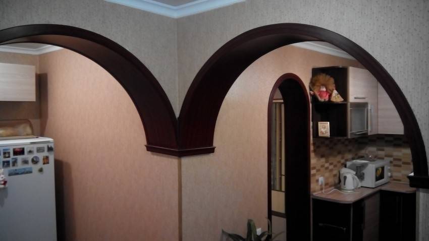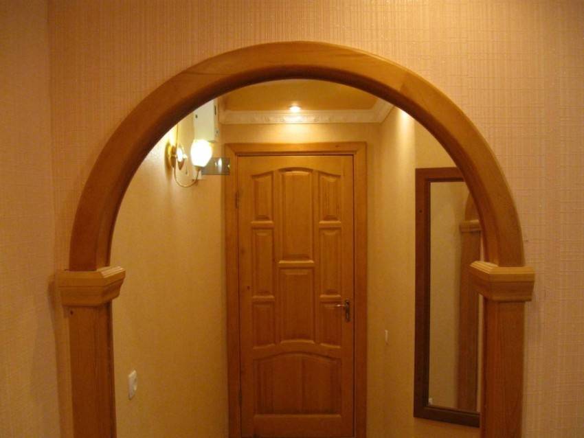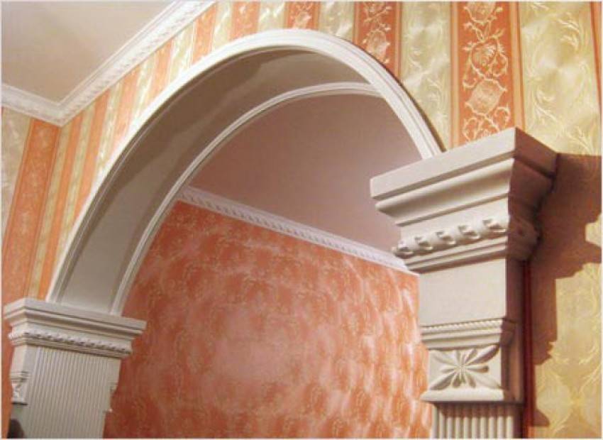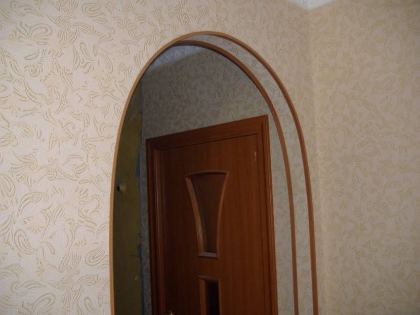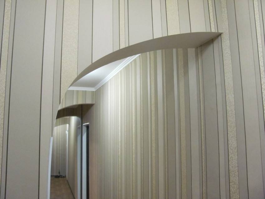 тот же материал, что использовался при отделке арки. Такой вариант рекомендуется применять для широких простенков и больших проходов.