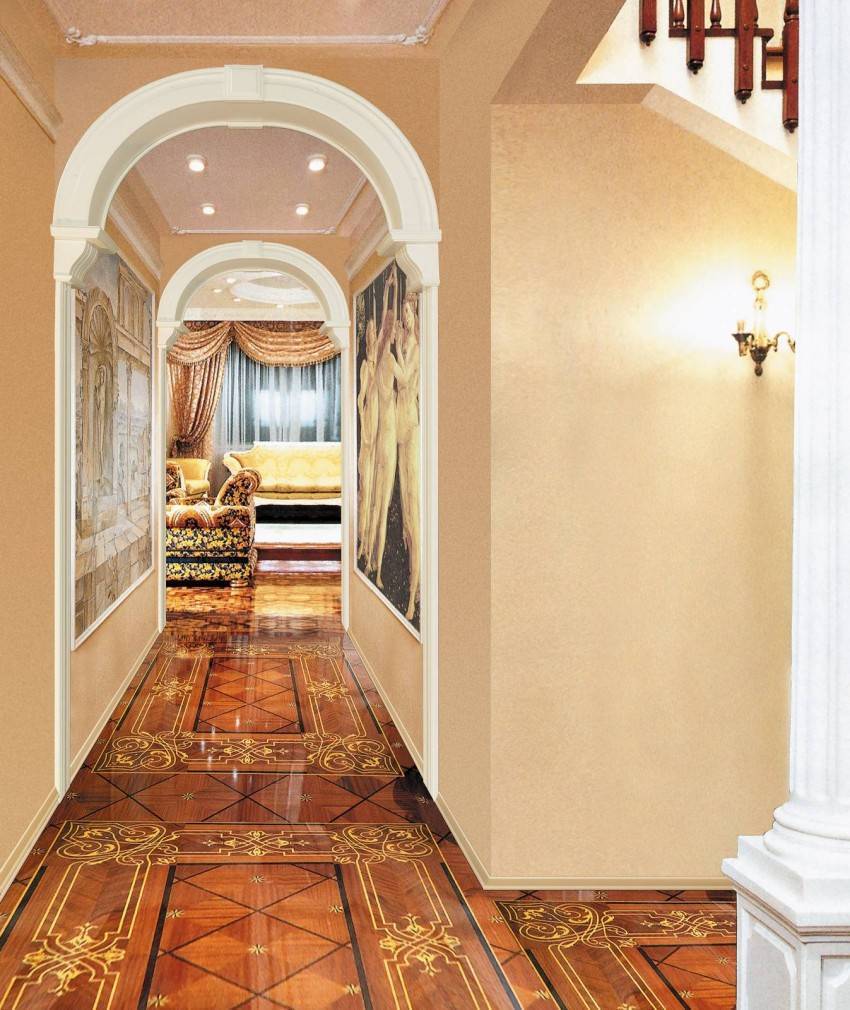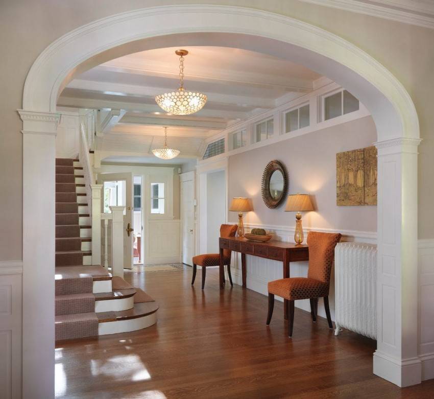 Обычно эта арка отличается от стандартного проема большими размерами, позволяет зонировать пространство и органично смотрится практически в любой обстановке, особенно в духе классики.