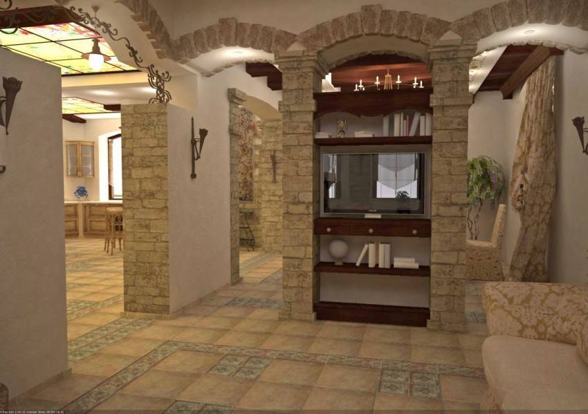 - декоративная штукатурка. Этот вариант особенно хорошо сочетается с аркой, отделанной искусственным камнем;