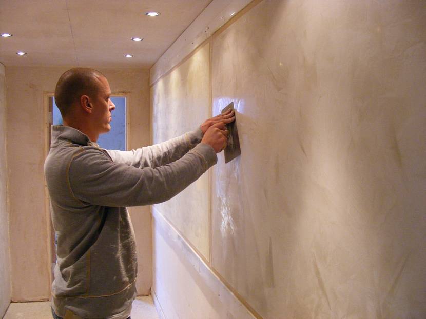 Данный этап считается самым ответственным. От его правильного проведения зависит внешний вид получившейся поверхности и ее эксплуатационные показатели. Работы нужно начинать сразу после того, как материал схватится. Обычно для этого требуется 30 минут. Проверить готовность стены просто: достаточно прислонить к ней ладонь, если она не липнет, можно начинать.