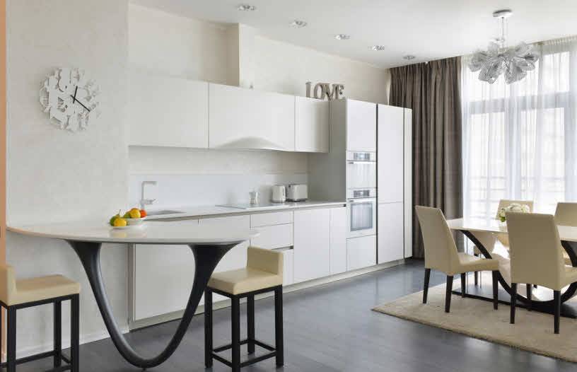 Оформление зоны кухни декоративными штукатурными составами придаст помещению законченный вид. Использовать такую отделку можно в интерьерах, оформленных в любых стилях.