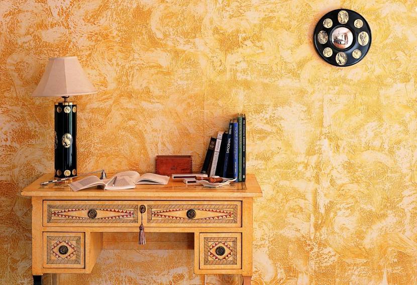 Венецианская. Стены после такой отделки блестят глянцем и не имеют швов. С помощью разнообразных добавок можно сделать на стенах красивые рисунки.