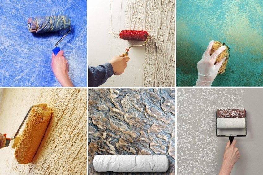 Узоры валиком – различные узоры можно получать с помощью специальных структурных валиков. Нужно в магазине выбрать валик с понравившимся вам узором и просто прокатывать его по стене. Так можно получить даже фактуру натуральной кожи рептилии.