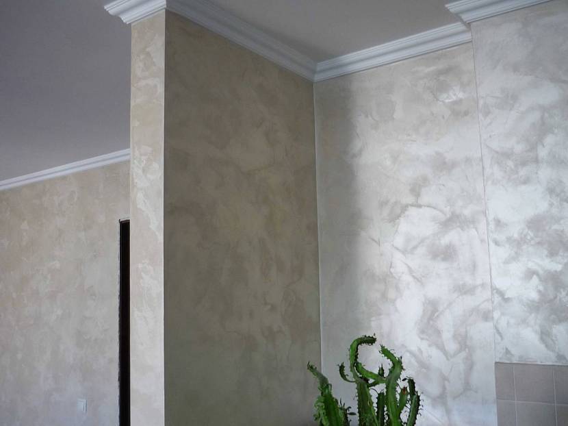 В составе такой штукатурки присутствуют частички мрамора и известь. При необходимости можно получить мраморную или глянцевую поверхность. Нанесенный состав быстро высыхает с возможностью образования рельефа по типу мозаики. Среди качеств такого долговечного покрытия выделяют экологичность, пожаробезопасность, устойчивость к износу и воздействию влаги.