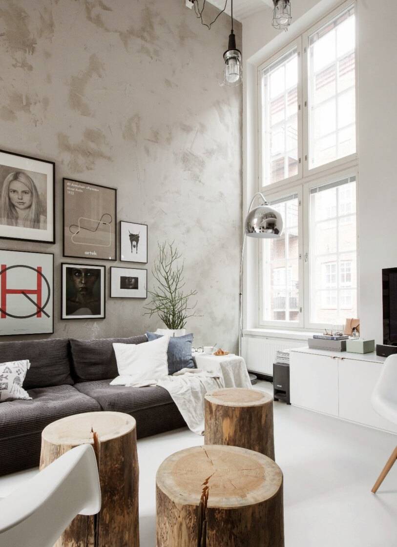Сочетание дерева с другими материалами при оформлении помещения в стиле лофт