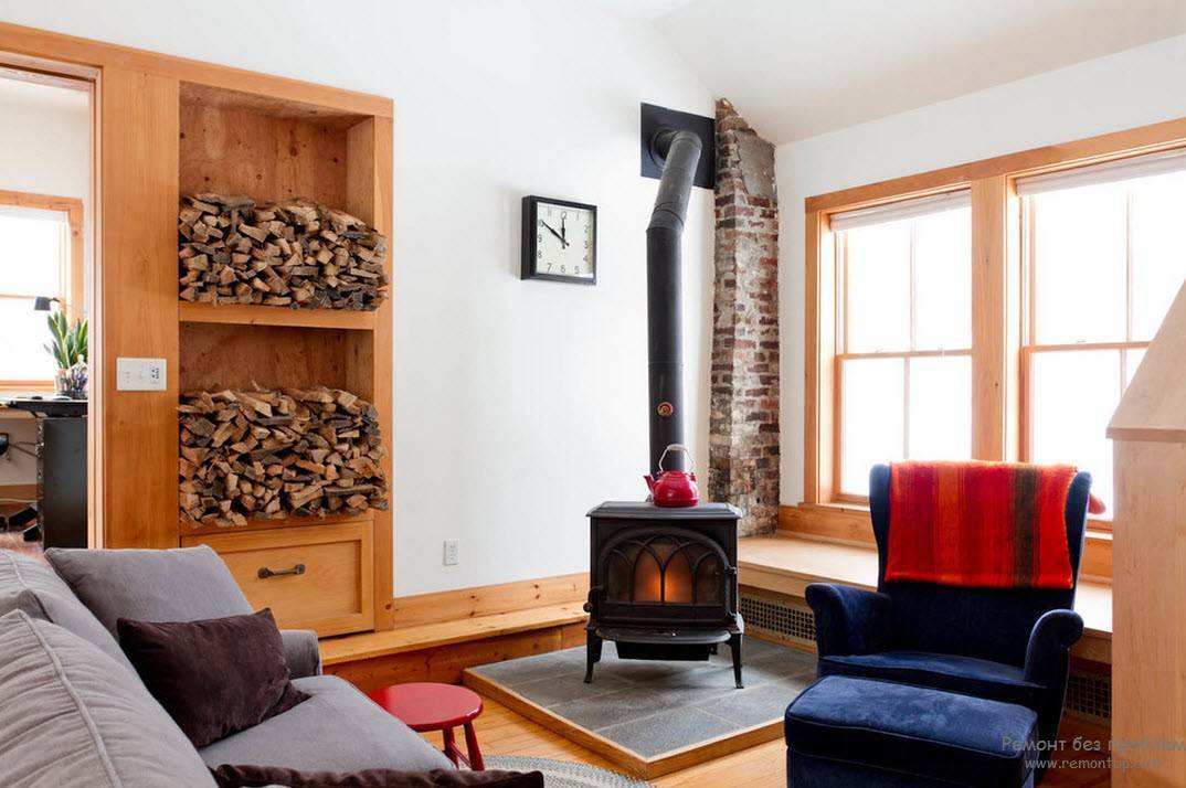 Интерьер с использованием деревянных элементов, как впрочем, и любой другой, имеет множество совершенно разных решений. В зависимости от возможностей и предпочтений, можно увлечься авторской мебелью и дорогими аксессуарами, а можно использовать природное богатство вокруг дома, дополнить его камином или очагом, отвести место для сухих и ароматных дров.