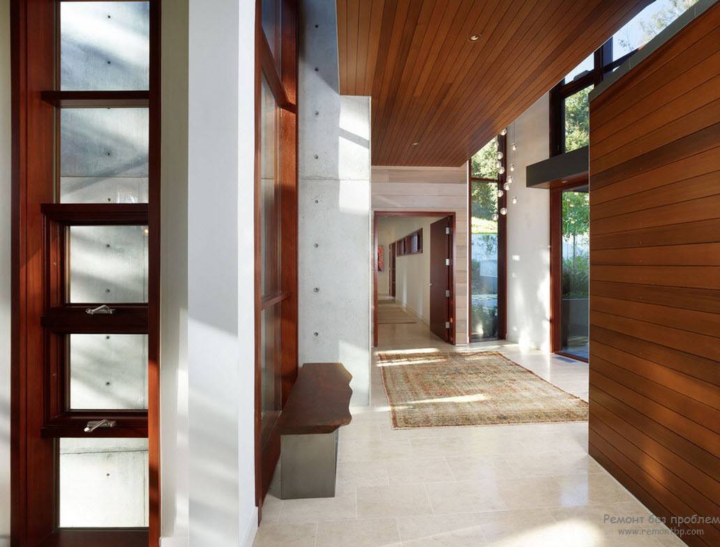 Кому-то дерево нравится, другим напоминает сауну или балкон. Может, для комнат вагонка является слишком агрессивной, зато в прихожих и коридорах отделка доской из массива является лучшим вариантом. Если есть возможность, таким материалом отделывают офисы или административные помещения.