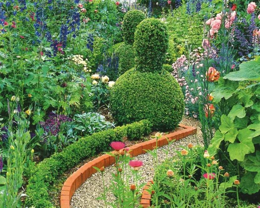 Кустарники хорошо смотрятся у развилок и изгибов садовых дорожек