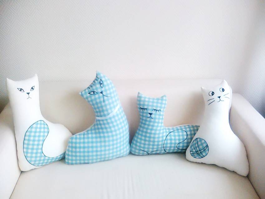 Подушки можно делать совершенно любой формы. В этом нет никаких ограничений, главное проявить фантазию. Можно использовать технику модульного шитья. Для этого изготавливаются несколько простых частей, которые впоследствии сшиваются в месте в сложное изделие.