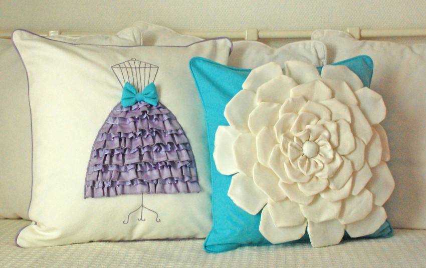 Из обычной подушки вполне можно сделать декоративную, использовав для этого собственноручно созданную наволочку. В этом случае декоративность ее никак не уменьшится, а вот хлопот с пошивом будет намного меньше.