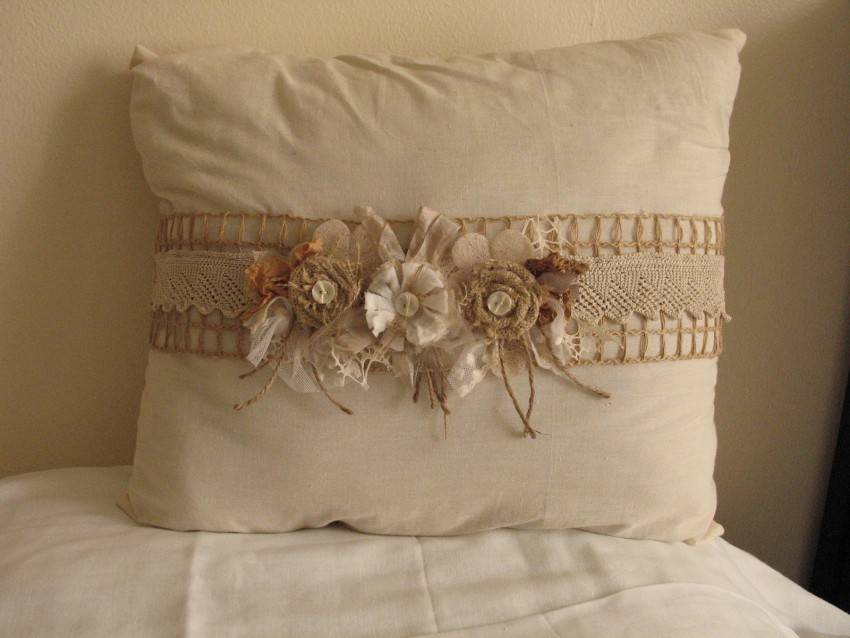 Форма подушки не обязательно должна быть квадратной или прямоугольно, она может быть любой, какую только пожелает ваша душа и фантазия. Все украшения, которые будут использоваться в декорировании, нужны будут для самой наволочки. Наволочка легко снимается, по этому ее не сложно будет снять для того, что бы простирнуть или заменить на другую.