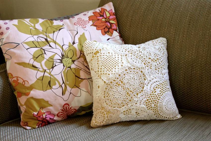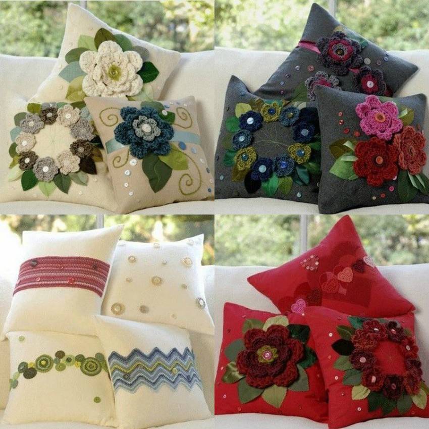 Кстати, обладать навыками работы с крючком или спицами, чтобы украсить интерьер оригинальным изделием, необязательно. Вязаные наволочки на диванные подушки можно сделать из старых свитеров, жилетов, кофт, других вещей.