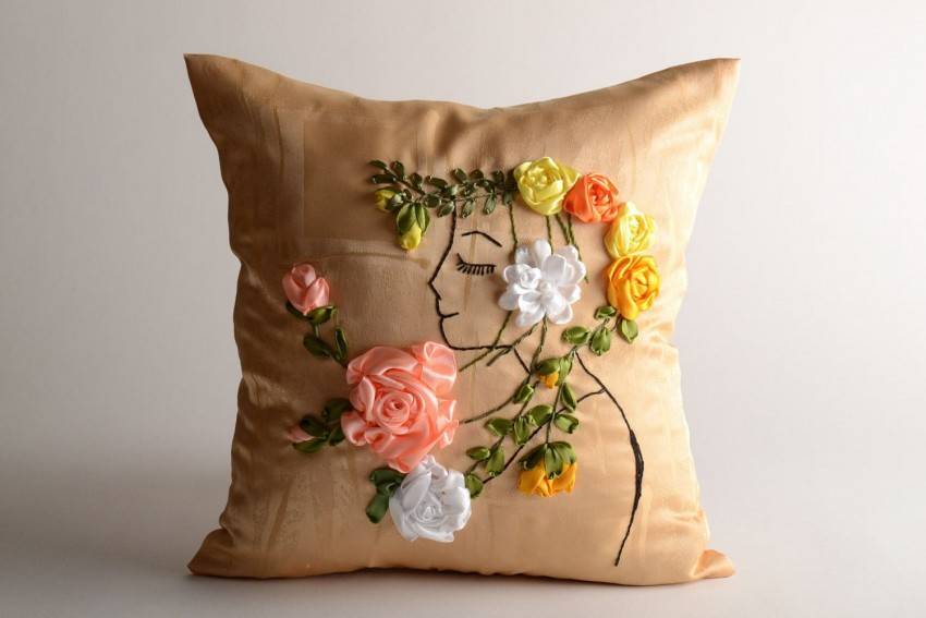 Если есть готовая наволочка в хорошем состоянии, необязательно заниматься шитьем. Преобразить ее можно разными способами. На однотонном изделии можно гладью, крестиком вышить изображение, выбрав тематику, оттенки в соответствии с особенностями, стилем интерьера.