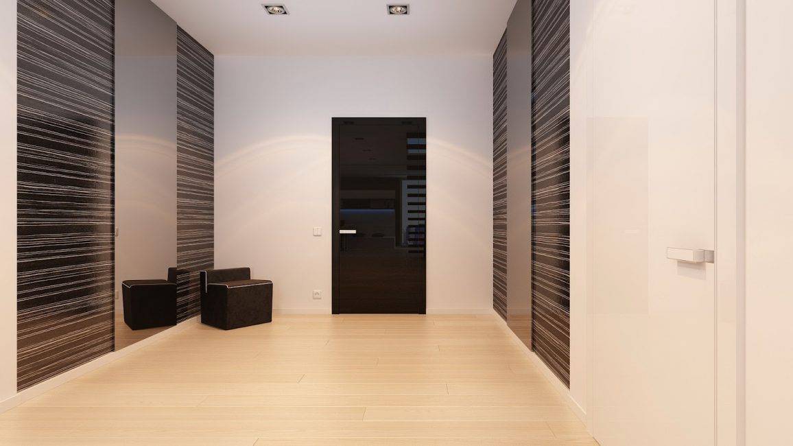 Позволит добавить интерьеру коридора выразительности и уникальности. Черная стена станет главным акцентом и будет смотреться очень элегантно, шикарно и оригинально.