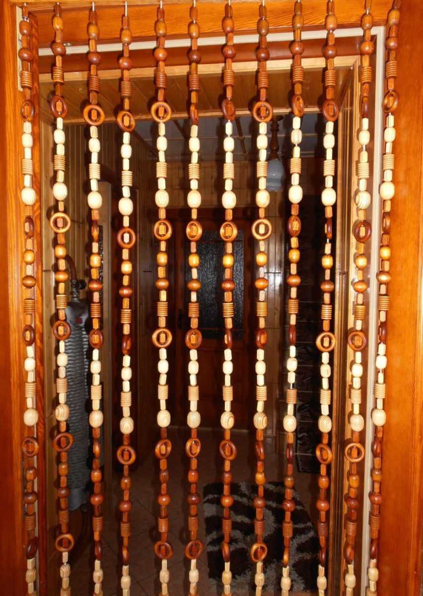 Применение деревянных штор на двери позволяет наделять пространство помещений приятным комфортом натуральной природы. Такие изделия чаще всего используют для оформления межкомнатных проемов, кладовок и гардеробных.