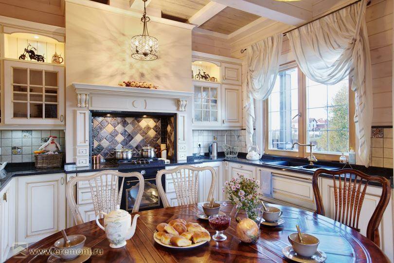 По сути, именно этот стиль подходит для загородного дома лучше всего. В отделке и при строительстве он требует использования натуральных материалов, красивой фурнитуры, различных кованых элементов.