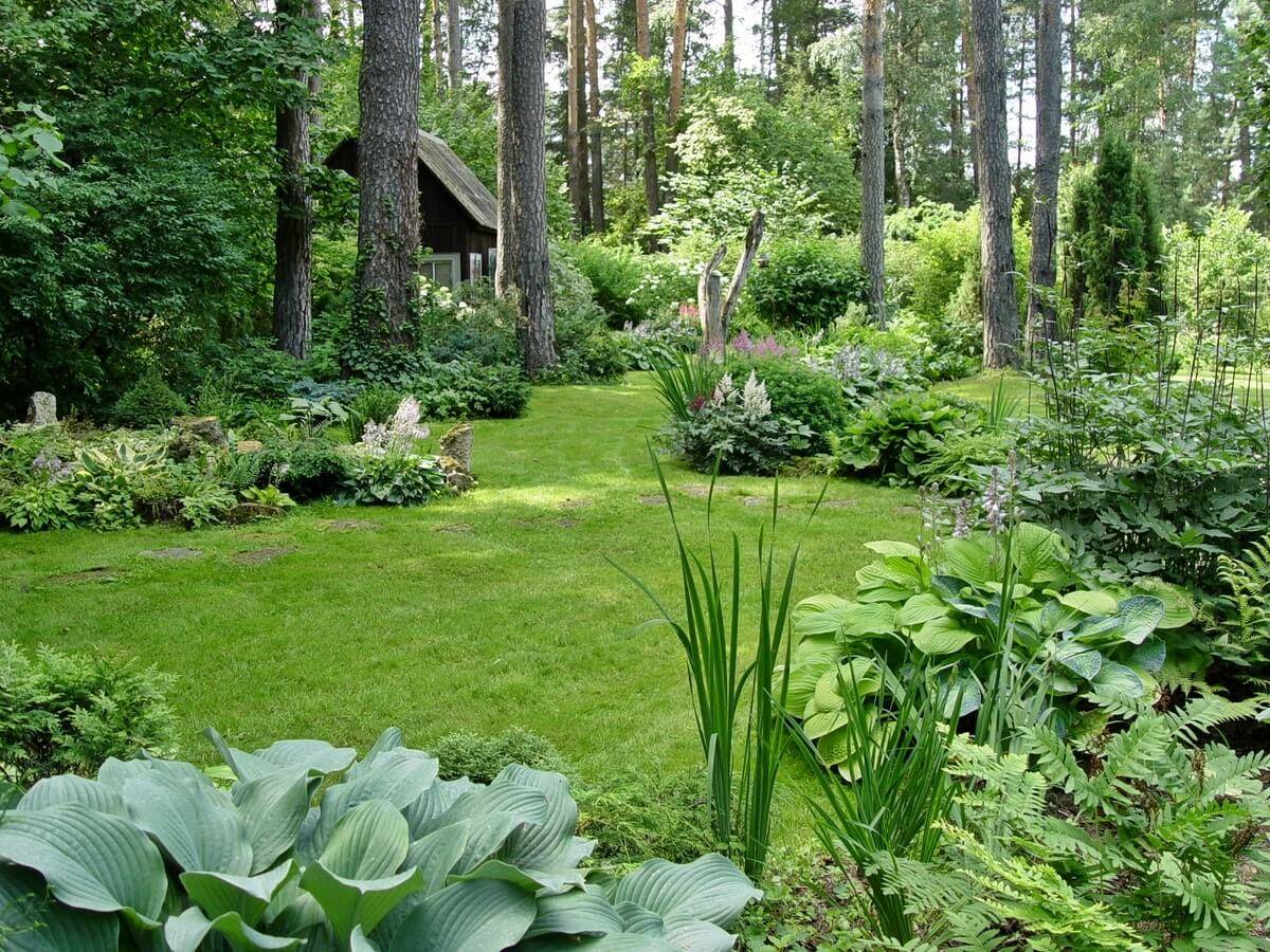 Включите в ландшафт хвойные породы, если хотите, чтобы участок зеленел в любое время года. Хвойные, плюс ко всему, станут выделять фитонциды, которые подавляют болезнетворные микроорганизмы и отпугивают вредителей. Карликовые сосны, можжевельники, хвойники хорошо согласуются с пересечённым и каменистым рельефом, с кустами вереска, голубики, шиповника. В тени, у каменных стен и валунов органично будут смотреться папоротники. Их чередуют с хостами, астильбами, гейхерами, тиареллами.