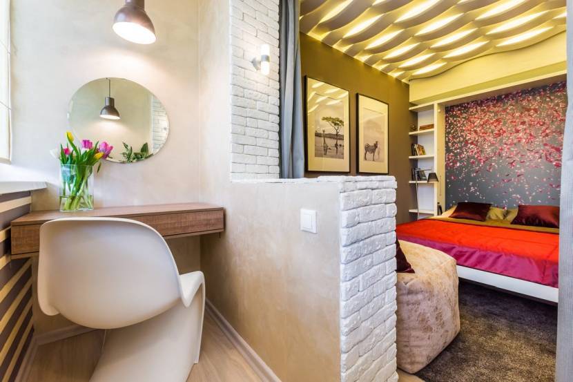 Например, стены можно оформить подобным материалом полностью или частично. В современных интерьерах часто укладывается таким кирпичом только одна стена. Подобный прием используется для оформления балконов – здесь декорируется поверхность напротив окна. Если в комнате есть камин, то стену, около которой он установлен, также можно облицевать натуральным камнем. Выигрышно смотрятся углы, ниши и дверные проемы, отделанные кирпичом или искусственным бутом.