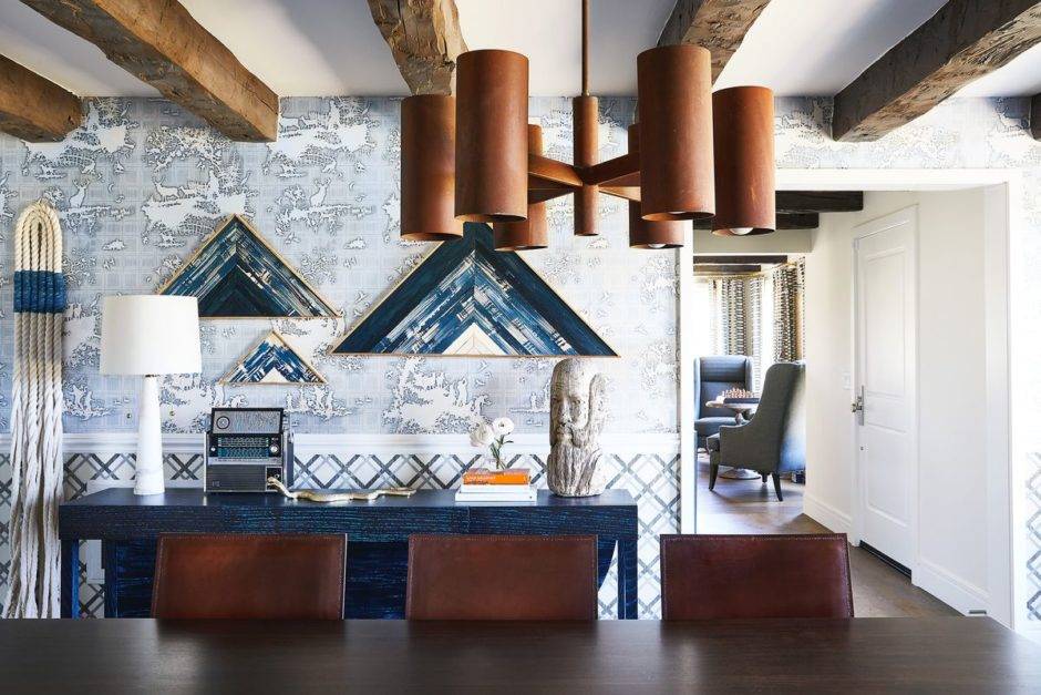 Идеально подходит и подчеркивает основные элементы и традиции этого направления. Частично используя обои под камень, можно разделить комнату на функциональные зоны.