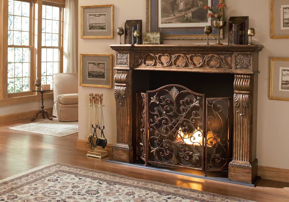 Кроме прочего, каминный портал способен принести дополнительное тепло. Портал нагревается и дополнительно прогревает пространство вокруг себя. Антикварные порталы с кованным железом сочетают в себе все три функции: декор, защита и дополнительный обогрев. Изысканный внешний вид дополняет интерьер помещения и создает особый акцент на камине.