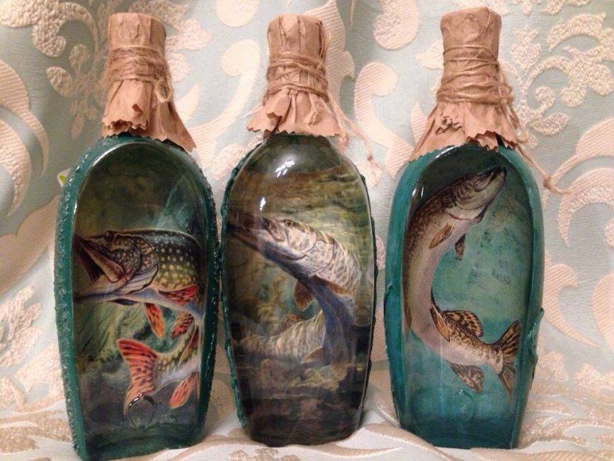 Материал для декора бутылок своими руками в домашних условиях подбирают, исходя из идеи и доступной техники.