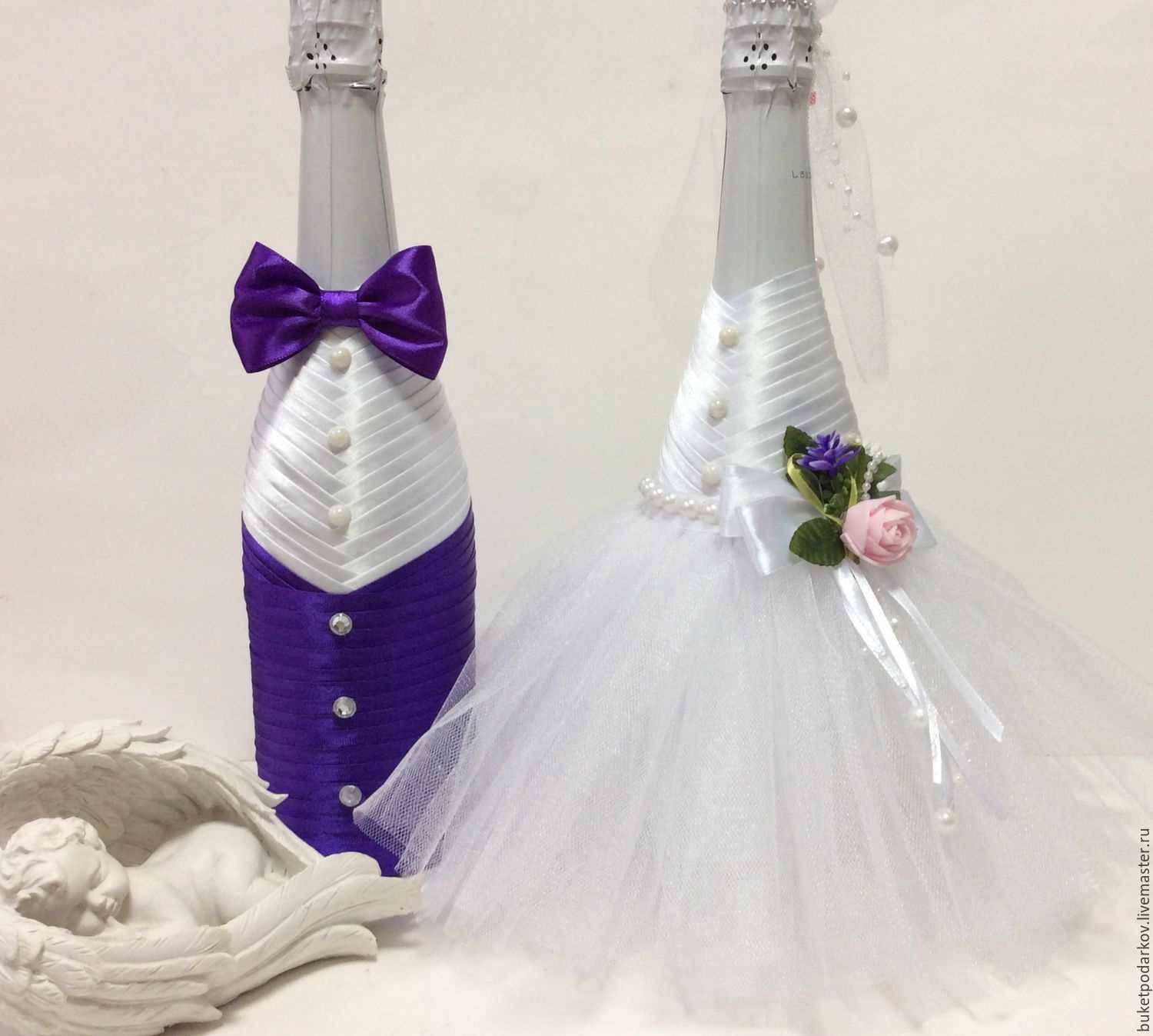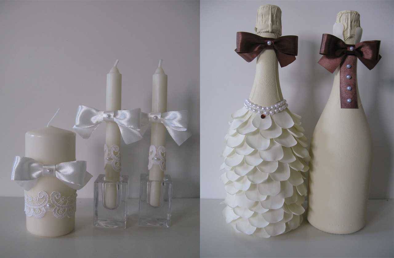 В качестве наглядного примера предлагаем мастер-класс по декорированию свадебных бутылок.